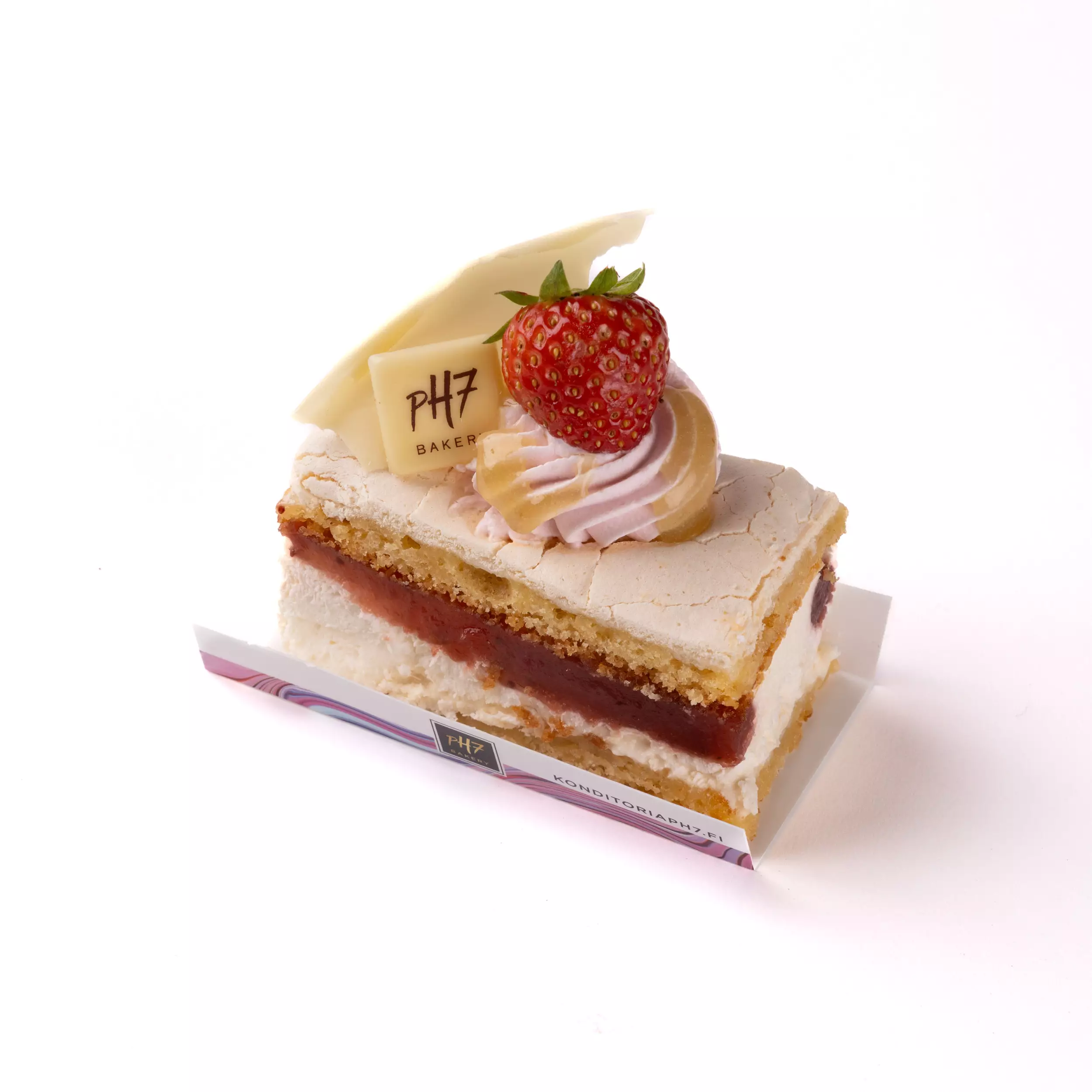 Pehmeää marenkipohjaa raparperi- ja mansikkahillolla. Kesäinen ja gluteeniton leivos