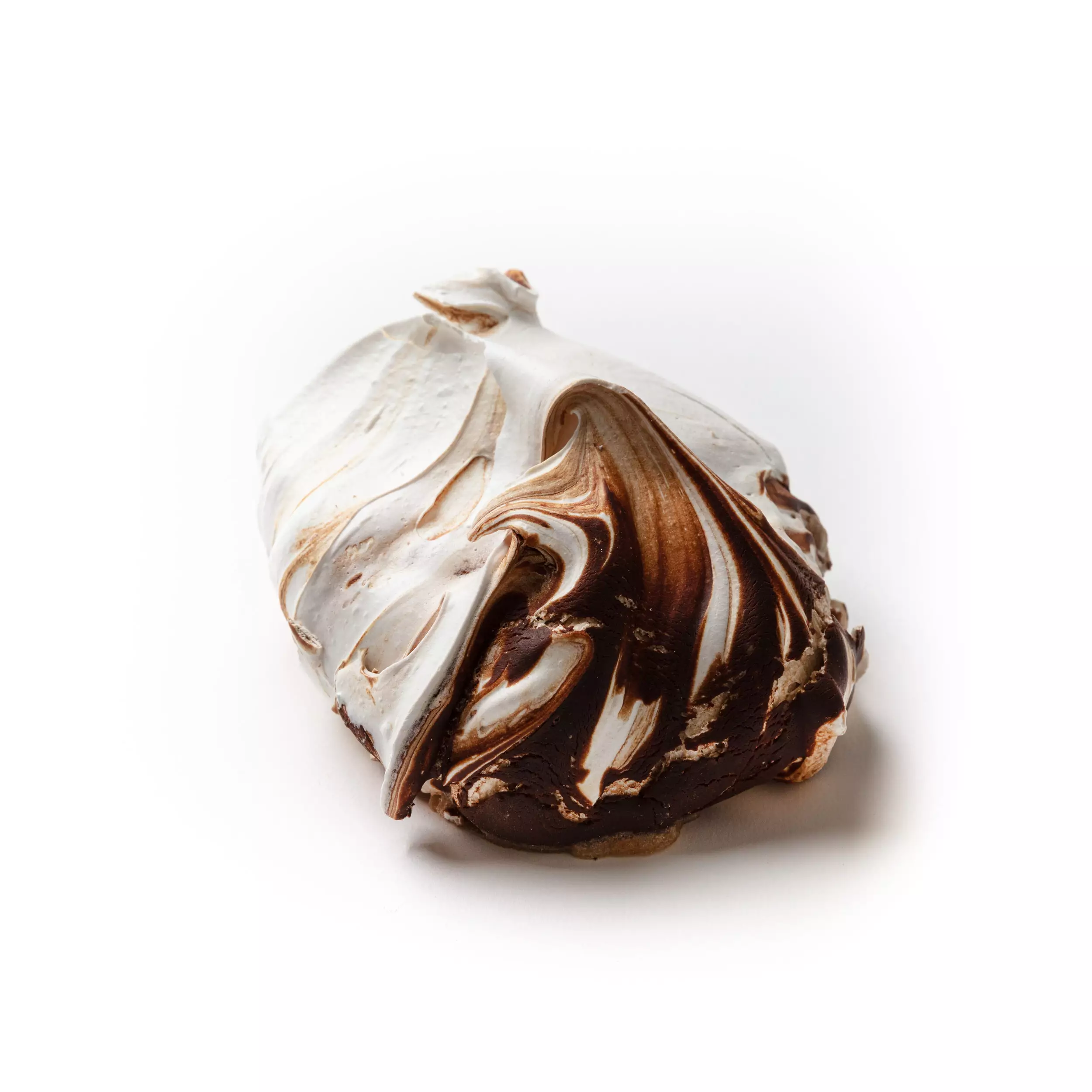 Tämä ihana herkku saa nimensä tekniikasta,miten se on valmistettu. Valkuainen ja sokeri lämmitetään halutun lämpöiseksi, jolloin marengista saadaan samettisen pehmeää. Kun tähän marenkiin lisätään tummasta suklaasta ja kermasta kiehautettua ganachea, on syntisen makea herkku valmis. Murra tästä pieniä paloja kun makean nälkä yllättää.
