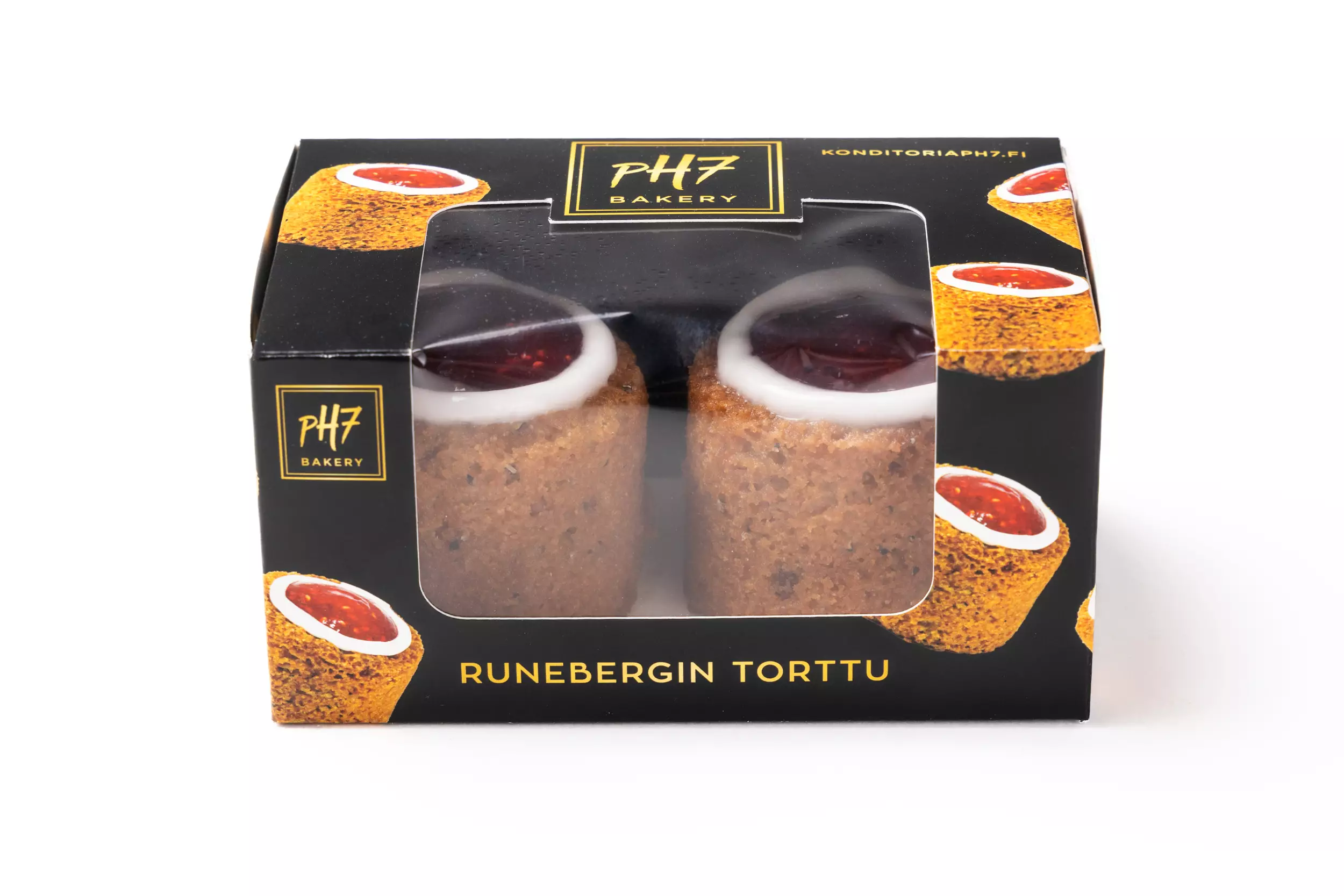 Kaksi mehevää gluteenitonta Runebergin torttua kätevässä rasiassa. Tortut on kostutettu aidolla rommi-sokerivedellä ja viimeistelty täyteläisellä vadelmahillolla. Täydellinen jaettava herkku... Lue lisää