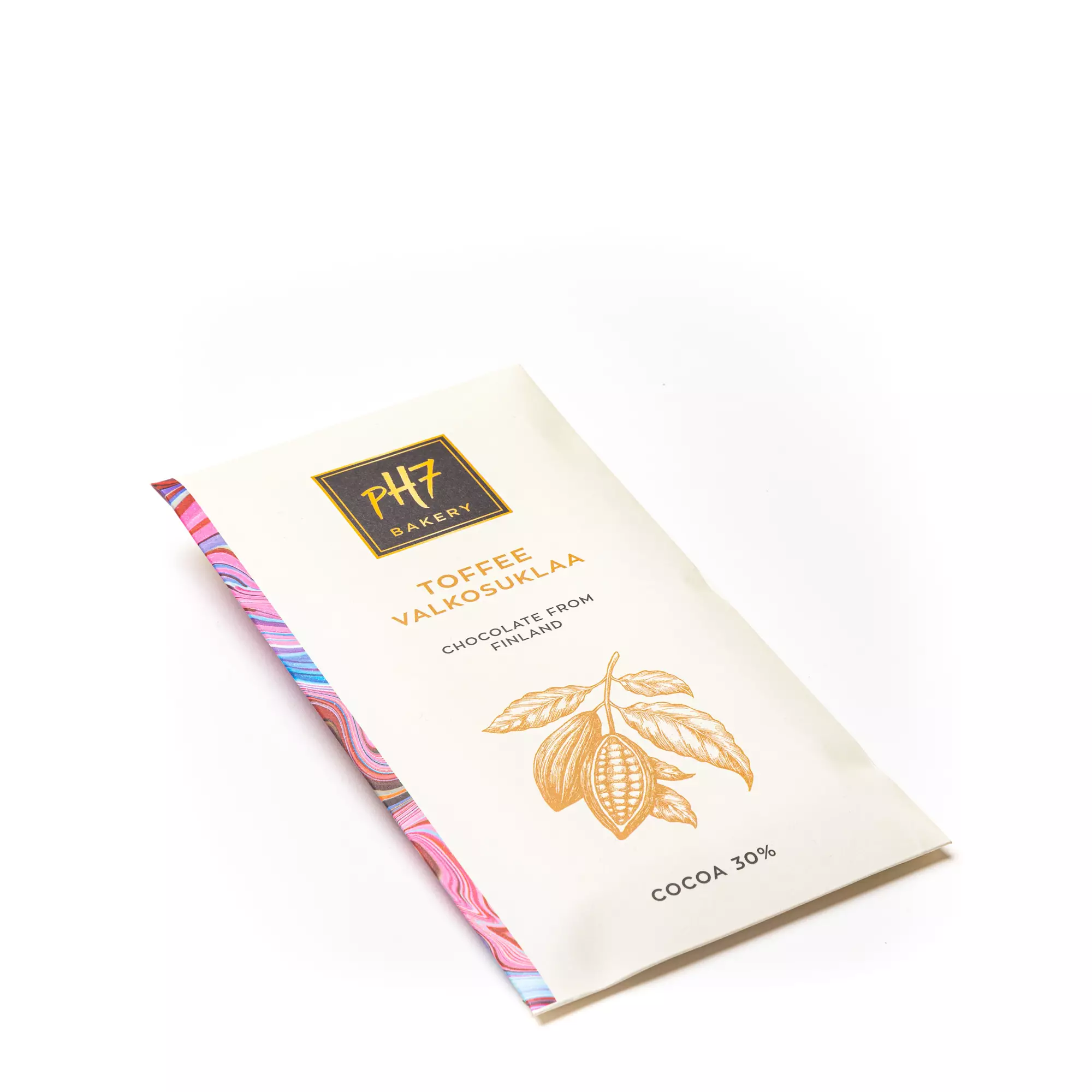 Toffeen ystävälle! Paahdetun valkosuklaan ja karamellisoidun sokerin yhdistelmällä saadaan mitä herkullisin makuyhdistelmä. Jos pidät kinuskista ja valkosuklaasta, rakastat tätä suklaalevyä. Kaakaopitoisuus 30%