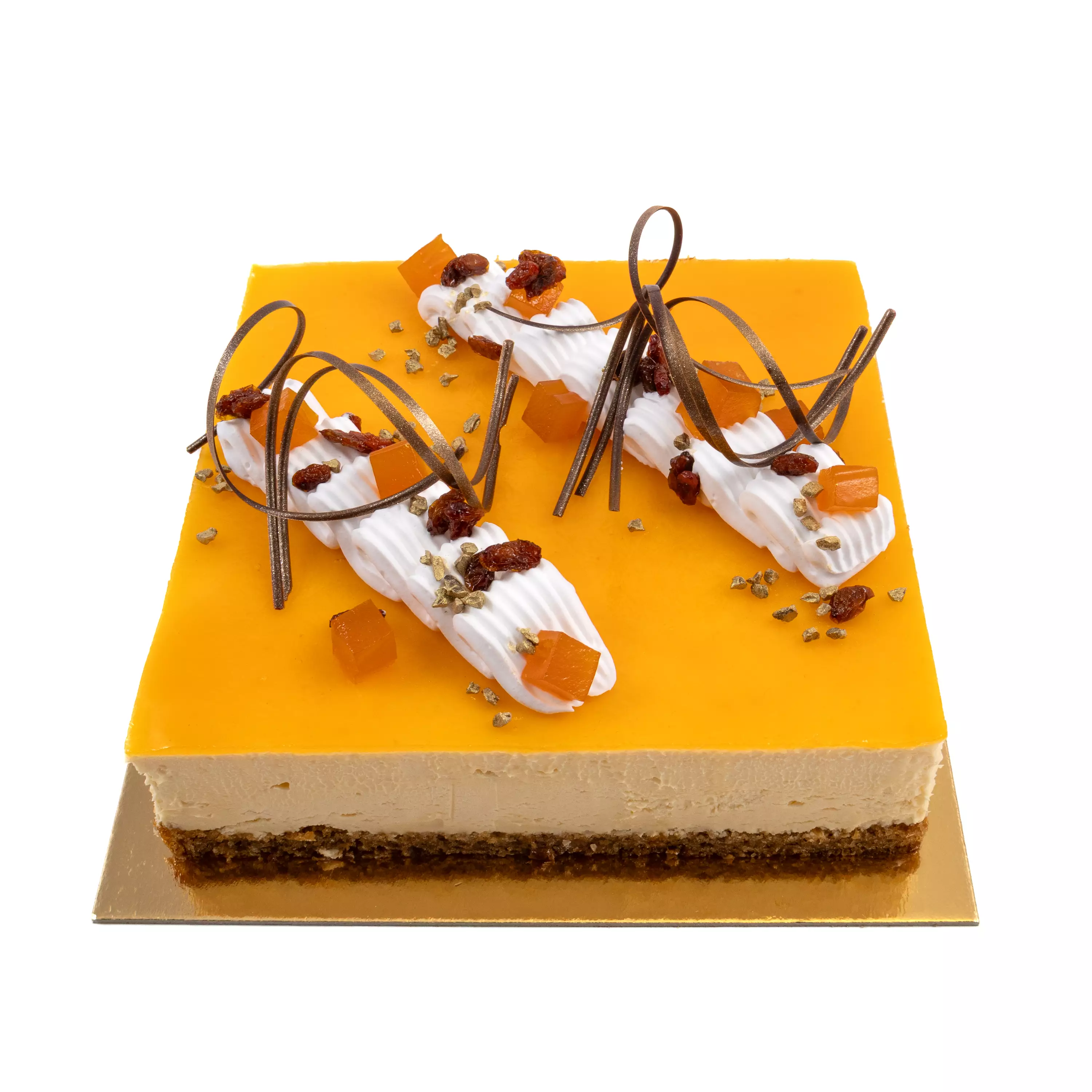 Koristeena kaunis soijavispi-pursotus, kuivatut tyrnit,tyrninopat, kullattua kaakaopapua ja upeat kultaiset tummasuklaakiekurat tekevät tästä kakusta todellisen katseenvangitsijan.
