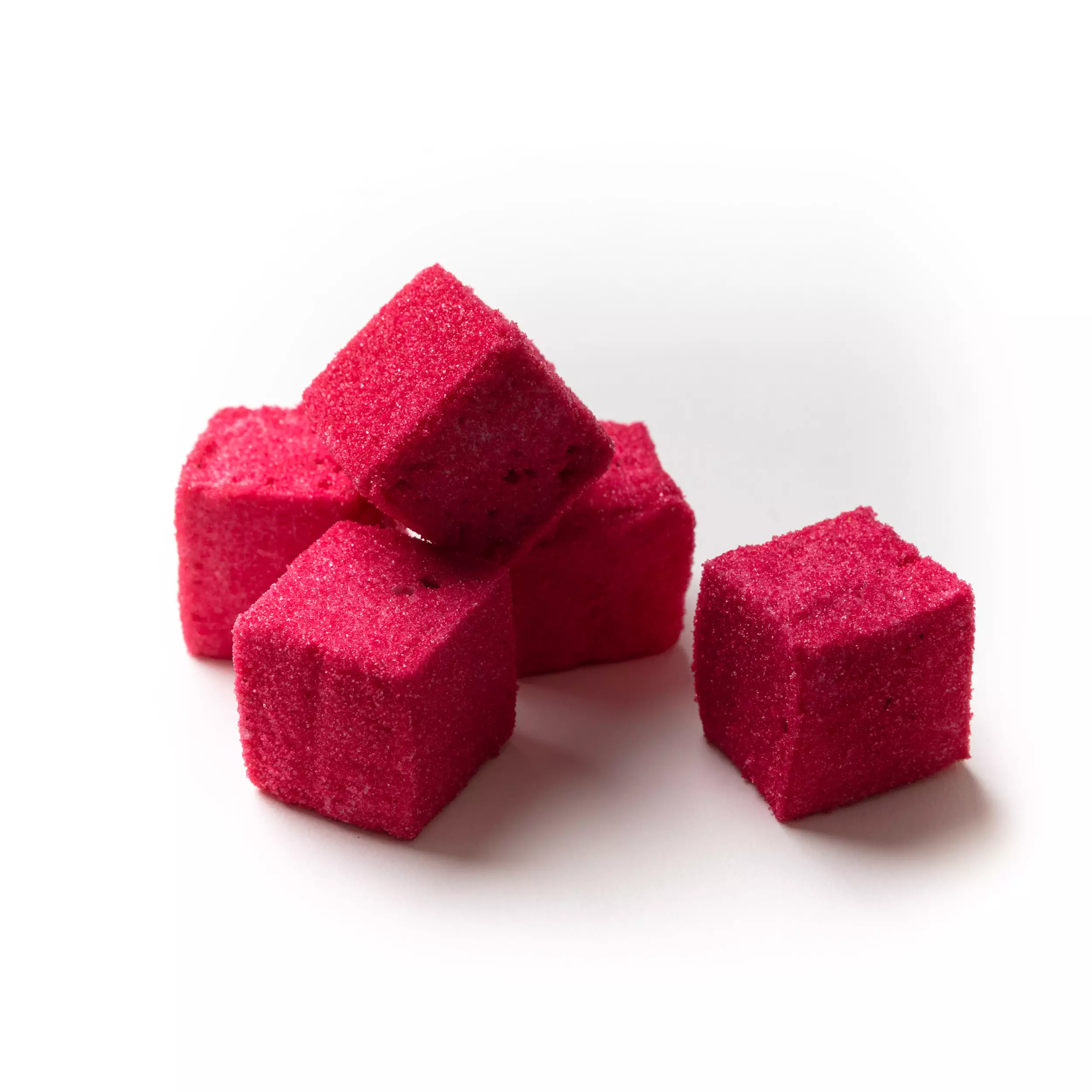 sokeri, vehnä-, tai/ja maissitärkkelys, vadelmapyre, liivate, vesi, sitruunahappo (E330)