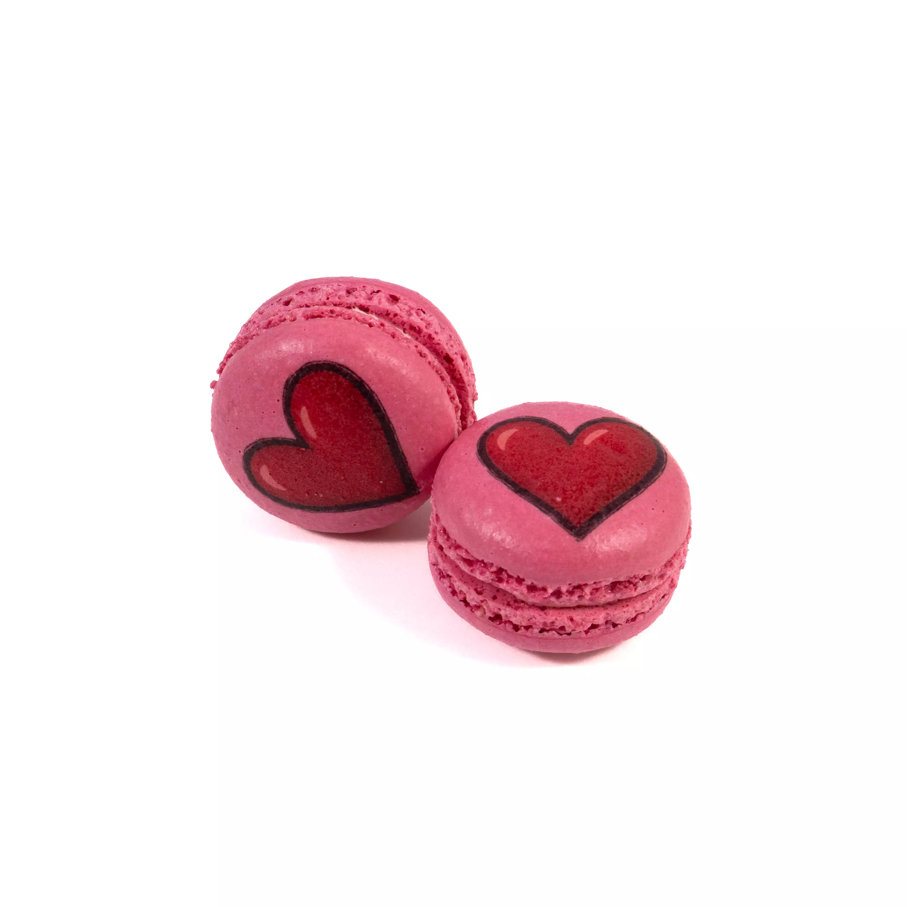 Vadelmamacaron sydän kuvalla. Hemmottele itseäsi tai yllätä läheisesi herkullisella vadelmamacaronilla, joka sulattaa sydämet – kirjaimellisesti.